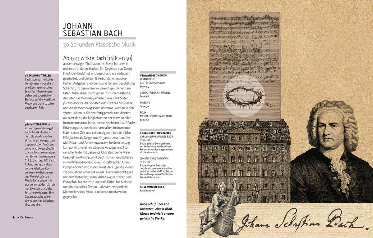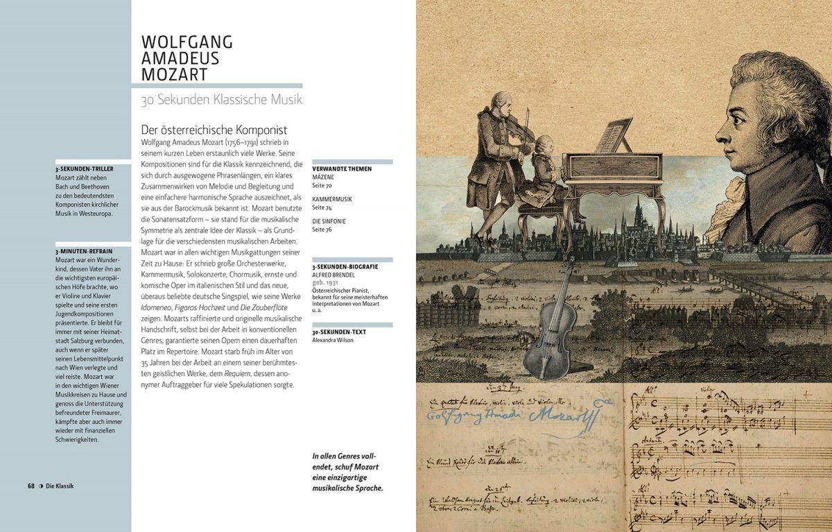 Klassische Musik in 30 Sekundenerforscht die Epochen, Komponisten und Strömungen der klassischen Musik. Auf jeweils nur zwei Seiten werden in Wort und Bild 50 Themen behandelt, die einen Bogen von den ersten Theorien zur Musik und den frühen Stilepochen bis hin zu elektronischen Kompositionen und Filmmusik spannen. Hier finden Sie alles, um sich einen Überblick über die außergewöhnliche Größe und Komplexität einer Kunstgattung zu verschaffen, die die Menschheit seit Anbeginn berührt. Illustriert mit Grafiken und ergänzt durch Glossare und Biografien wird Ihnen dieser Band den Weg zu wahrer Kennerschaft ebnen.